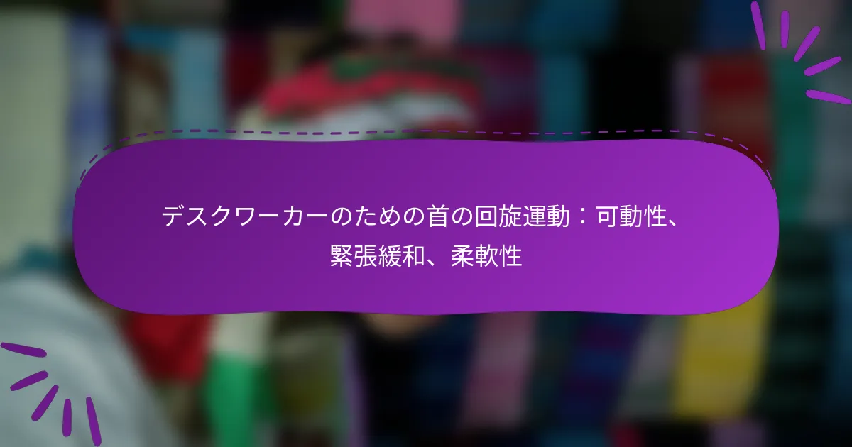 首の回旋運動は、可動性の向上、緊張の解放、柔軟性の改善に効果的であり、特にデスクワーカーにとって重要です。他の可動性ルーチンと比較して、首の領域に特化しており、長時間の座位からの不快感を軽減する独自の利点を提供します。